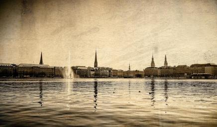 Keywords: city town center germany architecture city views silhouette mood landscape urban fountain water hamburg bubble water feature spray sparkling drip wet water fountain lake outer alster alster beautiful