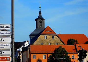 Keywords: city view steeple hospital church bayreuth upper franconia bavaria germany city church old town historically architecture roofs building outlook cityscape tower old sky
