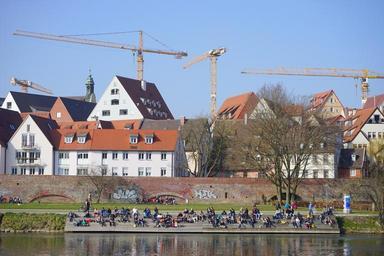 Keywords: city view ulm construction cranes cranes danube site homes river water recovery city life