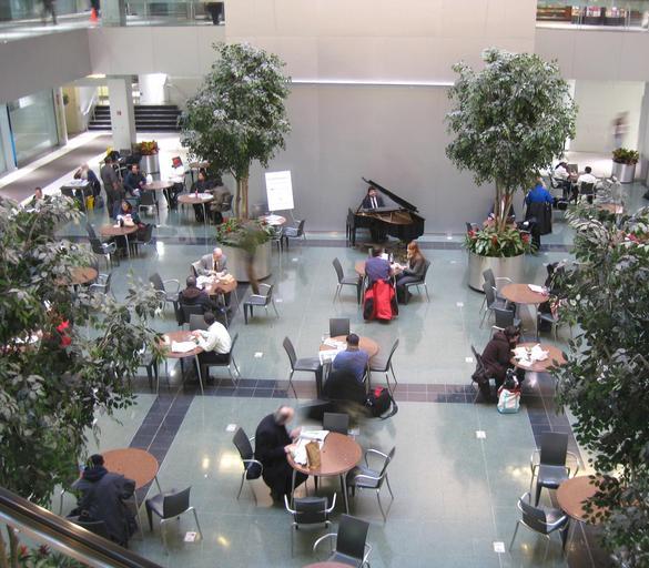 Keywords: CityCorp Center Manh lobby plaza jeh.JPG en Looking west and down into public lobby of w Citigroup Center with public seating and piano player Own Jim henderson 2009-01-15 40 45 29 7 N 73 58 11 3 W heading WNW Citigroup Center Lobbies room