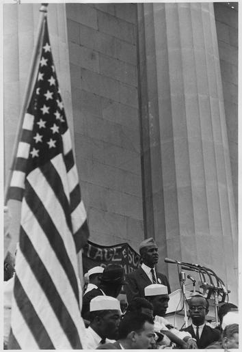 | Keywords: Civil Rights March on Washington, D.C. (Roy Wilkins, Executive Secretary of the National Association for the... - NARA - 542058.tif Roy Wilkins Executive Secretary of the National Association for the Advancement of Colored People speaking Scope and content General notes Roy Wilkins NAACP speaking at March on Washington for Jobs and Freedom podium at the Lincoln Memorial 8 August 1963 542058 Local identifier 306-SSM-4D 97 25 U S Information Agency Press and Publications Service ca 1953 - ca 1978 Still Picture Records Section Special Media Archives Services Division NWCS-S National Archives at College Park 8601 Adelphi Road College Park MD 20740-6001 1963-08-28 Record group Record Group 306 Records of the U S Information Agency 1900 - 2003 Record group ARC 622 Miscellaneous Subjects Staff and Stringer Photographs compiled 1961 - 1974 Series ARC 541992 File unit File unit ARC Variant control numbers NAIL Control Number NWDNS-306-SSM-4D 97 25 yes Other versions NARA-cooperation PD-USGov March on Washington for Jobs and Freedom Roy Wilkins NAACP Columns in Washington D C NARA images of Washington D C Black and white photographs of flags of the United States Black and white photographs of Washington D C |