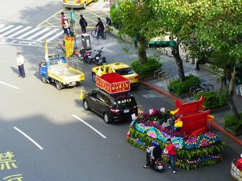 Keywords: Ciyou Temple Mazu Cruise Parade 20131117-016.JPG zh-tw 山慈祐宮建宮260 年 念媽祖遶境, 山奉天宮車隊先導幡車 指揮車與輿宮等 過三民路路口 2013-11-17 09 02 24 Own 玄史生 Ciyou Temple 260th Anniversary Mazu Cruise Parade Traffic lights at green state in Taiwan 玄史生写 文庫 Taken with Kodak EasyShare Z980 Uploaded with UploadWizard cc-zero |