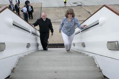 | Keywords: CJCS talks with future leaders 140611-D-KC128-390.jpg en Chairman of the Joint Chiefs of Staff Gen Martin E Dempsey and his wife Deanie walk up the stairs to depart London after a three day trip where he participated in the Defense Chiefs Strategic Dialog and spoke to students of Joint Services Command and Staff College with U K Chief of Defense Staff Gen Sir Nickolas Houghton June 11 2014 DOD photo by Mass Communication Specialist 1st Class Daniel Hinton 2014-06-11 Petty Officer 1st Class Daniel Hinton https //www dvidshub net/image/1392445 140611-D-KC128-390 2014-06-11 15 56 LONDON GTL GB PD-USGov Martin E Dempsey in 2014 Images from DoD uploaded by Fæ |