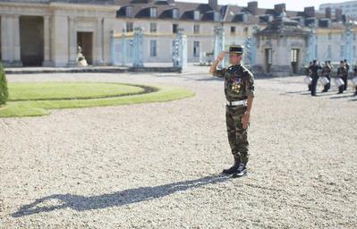 | Keywords: CJCS visits France 140918-D-VO565-045.jpg en The commander of a French military honor guard salutes during a welcome ceremony for Chairman of the Joint Chiefs of Staff U S Army Gen Martin E Dempsey not shown outside the French Ministry of Defense in Paris Sept 18 2014 DoD photo by D Myles Cullen/Released 2014-09-18 Myles Cullen https //www dvidshub net/image/1582529 140918-D-VO565-045 2014-09-29 17 01 PARIS FR PD-USGov Martin E Dempsey in 2014 Images from DoD uploaded by Fæ Ministry of Defense France |