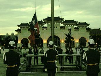 | Keywords: CKS Memorial Hall flag guards.jpg en ROC Army honor guard lowering the flag at CKS Memorial Hall in the evening zh-tw 中正 念堂廣場舉行降旗典禮的中華民 陸軍 隊 2005-12-20 Own L Chang The Honor Guard of Republic of China Army Salutes to flags Military people with flags of the Republic of China Gate of Great Centrality and Perfect Uprightness Taipei |