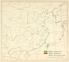 | Keywords: CL-36 Pinus taiwanensis, luchuensis & hwangshanensis range map.png en Map 36 Pinus taiwanensis Pinus luchuensis Pinus hwangshanensis distribution 1966-02 http //www biodiversitylibrary org/bibliography/66393 /summary Geographic distribution of the pines of the world Miscellaneous publication no 991 U S Department of Agriculture Forest Service Washington D C February 1966 William B Critchfield Elbert L Little Jr U S Department of Agriculture Forest Service PD-USGov Geographic Distribution of the Pines of the World Uploaded with UploadWizard Pinus taiwanensis Pinus luchuensis Pinus hwangshanensis |