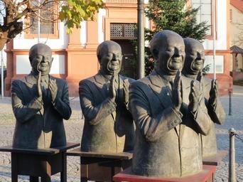 Keywords: claque schwetzingen sculpture memorial figures statues applauding men group