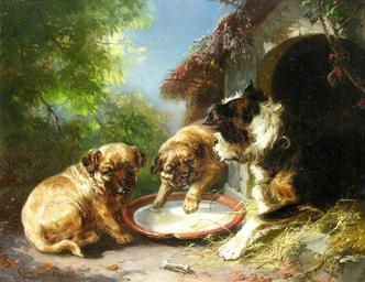 | Keywords: Clara von Wille Hunde vor der Hütte.jpg oil canvas cm 35 44 object history credit line accession number http //www hampel-auctions com/ PD-old-100 Clara von Wille 1880 paintings Oil paintings of dogs 19th-century paintings location missing Pugs in art Images from Hampel Auctions 19th-century paintings not categorised by year |
