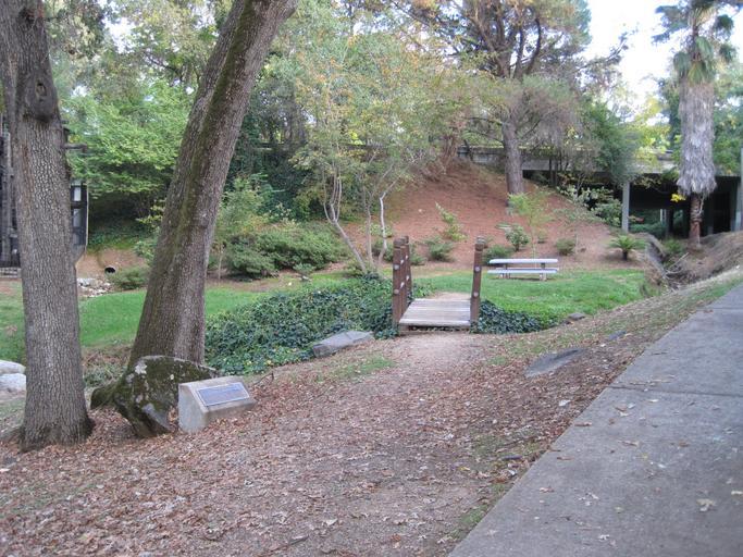 Keywords: Clark Ashton Smith Memorial Far.jpg en Long view of Clark Ashton Smith memorial in Bicentennial Park Auburn CA USA with park and overpass for Auburn-Folsom Rd in background 2011-10-15 own Mark Graybill cc-zero Uploaded with UploadWizard Bicentennial Park Auburn California |