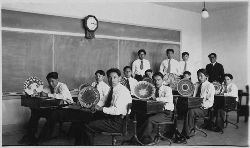| Keywords: Classes - NARA - 285433.jpg  Scope and content Home economics; girls cooking class; farm and blacksmith unit; engineering; institutional laundering; drawing; beadwork; Hopi basketry; woodworking; speech; agriculture; native Indian foods; food preparation General notes 285433 Local identifier Department of the Interior Bureau of Indian Affairs Pierre Agency 1954 - 1972 NARA's Central Plains Region Kansas City NREA 400 West Pershing Road Kansas City MO 64108 1934 - 1936 Record group Record Group 75 Records of the Bureau of Indian Affairs 1793 - 1999 Record group ARC 404 Pierre School Agency Photographs compiled 1911 - 1971 Series ARC 285400 File unit File unit ARC Variant control numbers NAIL Control Number NRE-75-PI PHO -183 Other versions <gallery> File Classes_-_NARA_-_285433 tif tif File Classes_-_NARA_-_285433 jpg jpg </gallery> NARA-cooperation PD-USGov Classrooms in the United States Native American basket weaving |