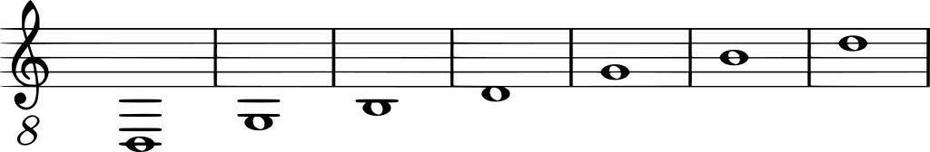 Keywords: Classic 7-string guitar tuning.svg en Classic 7-string guitar tuning own Ummagumma 2010-07-02 Inkscape Guitar notation Russian guitar notes