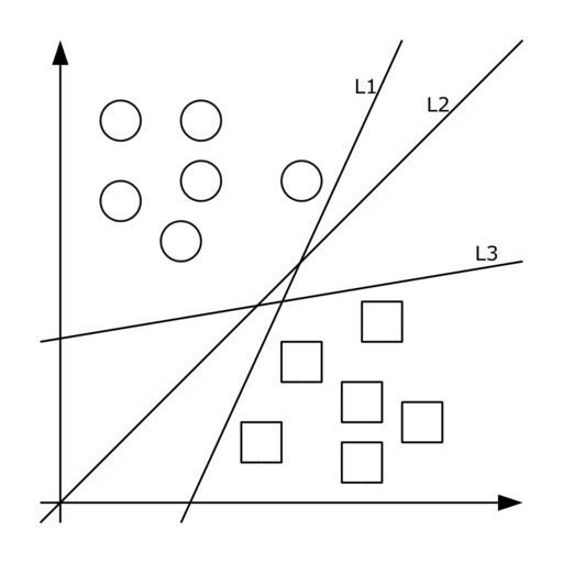 | Keywords: Classifier.svg Exisitence of multiple linear classifiers that achieve separation of the two classes Diversi classificatori lineari che separano le due classi Own 11/12/2007 DJGulp3 Released into the public domain by the author Classification algorithms |