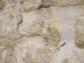| Keywords: Clastic dikes.JPG en Clastic dykes in recent late Pleistocene sedimentary strata Left an extensional crack formed in permafrost soil filled with gravel Right a sand dyke an escape structure formed by liquefaction of sand underneath a clay layer The sand bursts through the clay hydrofracture to form a clastic dyke The stress was due to an overlying advancing glacier during the last glacial maximum LGM about 25 000 years ago The dykes are cut off by an erosional unconformity covered by the basal till of the glacier Location quarry at Finsterhennen Switzerland own Woudloper 2007-09 Soft sediment deformation Sedimentary rocks Finsterhennen Geology of Switzerland Clastic dikes in Switzerland Rocks in Switzerland |