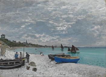 Keywords: claude monet sky clouds boats ships sea ocean water painting oil on canvas art artistic beach shore people
