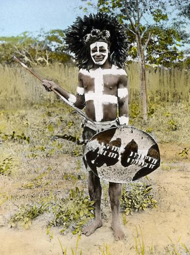 Keywords: "Clay-daubed Ngoni Warrior, Livingstonia" Malawi, ca.1895 (imp-cswc-GB-237-CSWC47-LS3-1-013).jpg en <br> Clay-daubed Ngoni Warrior Livingstonia Malawi ca 1895 Photograph of a Ngoni warrior dressed in traditional tribal dress including head dress The warrior is carrying a spear and shield and his face and body are painted with clay ; The Ngoni people are an ethnic group living in Malawi Mozambique Tanzania and Zambia Their origins can be traced to the Zulu people of kwaZulu-Natal in South Africa Photographer Unknown Filename imp-cswc-GB-237-CSWC47-LS3-1-013 tif Coverage date circa 1895 Part of collection International Mission Photography Archive ca 1860-ca 1960 Type images Part of subcollection Photographs from the Centre for the Study of World Christianity University of Edinburgh U K ca 1900-ca 1940s Repository name Centre for the Study of World Christianity Archival file impaunpub_Volume7/1401 url Repository address The University of Edinburgh School of Divinity New College Mound Place Edinburgh EH1 2LX United Kingdom Geographic subject country Malawi Format aacr2 1 lantern slide 8 x 8 cm Geographic subject continent Africa Rights Contact the repository for details Part of series Elmslie of the Wild Ngoni LS3/1 Repository email divinity-CSWC ed ac uk Subject lcsh Keyword Tribes; Ethnic costume Date created circa 1895 Publisher of the digital version University of Southern California Libraries Subject aat genre portraits Format aat lantern slides Legacy record ID impa-m68392 Access conditions http //www ed ac uk/schools-departments/divinity/research/centres/world-christianity/collections-resources File GB 237 CSWC47/LS3/1/13 1895 author http //digitallibrary usc edu/cdm/ref/collection/p15799coll123/id/64522 PD-old-70-1923 Magic lantern images Images from USC Digital Library uploaded by Fæ International Mission Photography Archive ca 1860-ca 1960 Nguni Men smiling while standing Warriors Fur shields Furs in 1895 Calf clothing Fur fashion in 1895 Livingstonia History of Malawi Nguni shields |