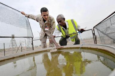 | Keywords: Clear Skies Forecasted, CJTF-HOA Meteorologists Share Technology With Djibouti DVIDS202534.jpg en Mr Said Darar chief of climatologic data for Djibouti shows U S Navy Lt Cmdr Ricardo Trevino a pool of water used to measure water temperature and evaporation at the Ambouli International Airport in Djibouti Sept 5 Trevino head of Combined Joint Task Force-Horn of Africa's Meteorological and Oceanographic Department and a native of Bayamon Puerto Rico was at the airport to install a high-frequency line-of-sight antenna that will allow Djiboutian weather forecasters to receive a steady stream of information from CJTF-HOA's AN/TMQ-53 Tactical Meteorological Observing System <br>Unit Combined Joint Task Force - Horn of Africa 2009-09-05 Petty Officer 1st Class Jonathan Kulp https //www dvidshub net/image/202534/clear-skies-forecasted-cjtf-hoa-meteorologists-share-technology-with-djibouti 090905-N-+++++-057 2009-09-09 13 01 DJIBOUTI DJ PD-USGov-Military-Navy Combined Joint Task Force - Horn of Africa Images from DoD uploaded by Fæ |