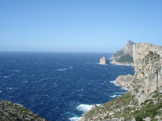 Keywords: cliff rock sea have mallorca creveta la view wide horizon water ocean