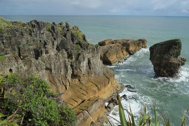 Keywords: Cliffs north of Punakaiki pancake rocks 1.jpg Cliffs just north of the Punakaiki pancake rocks Own 2013-04-23 Pseudopanax wikipedia en 42 6 48 96 S 171 19 35 84 E Pancake Rocks Stacks of New Zealand Rock formations in New Zealand