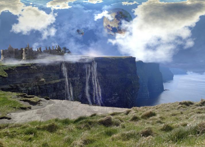 Keywords: cliffs waterfall fantasy landscape digital composite misty blue
