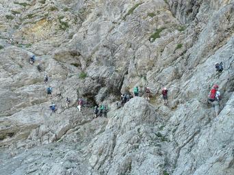 Keywords: climbing salewa klettersteig climb jam mountaineer climber crowded iseler