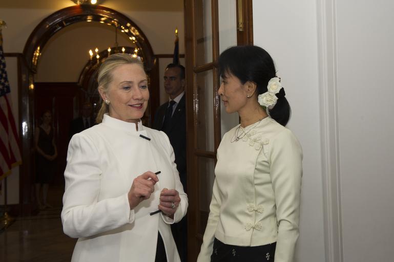 Keywords: Clinton talking with Suu Kyi.jpg en United States Secretary of State Hillary Clinton meets with Burma's pro-democracy leader Aung San Suu Kyi 2011-12-02 State gov http //www state gov/r/pa/ei/pix/2011/12/177900 htm link State Department photo by William Ng / Dec 01 2011 PD-USGov Uploaded with UploadWizard Visit by Hillary Rodham Clinton to Myanmar in 2011 Aung San Suu Kyi |