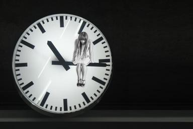 Keywords: clock hands time sad depressed looking down bummed worried girl black and white dial second minute symbol black white photo montage remix mixup horizontal landscape free image royalty free
