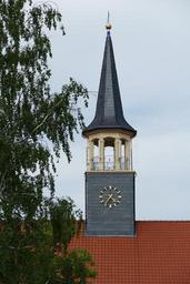 Keywords: clock tower tower spire ambulatory sky tree leaves