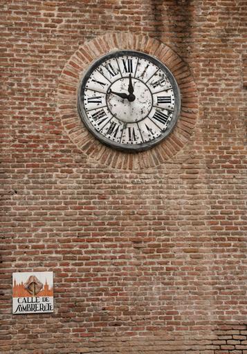 Keywords: clock wall stone time of time history sky architecture building high romance madrid spain stucco ornament road name mood