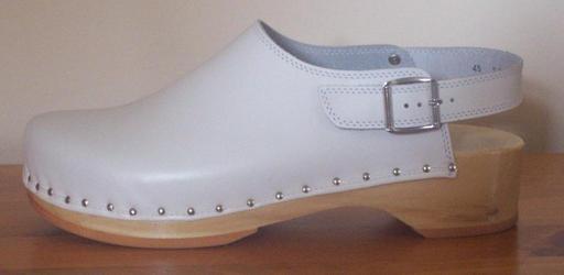 | Keywords: Clog with heelstrap-Berkemann-white.jpg Clog with wooden sole leather upper and heelstrap made by the German company Berkemann Model Riemen-Toeffler Colour wood and white Clog mit Holzsohle und Leder-Oberschuh mit Fersenriemen Hersteller Berkemann Deutschland Modell Riemen-Toeffler Farbe holz und weiß own Kuchen 2005 Clogs of Germany Leather shoes |