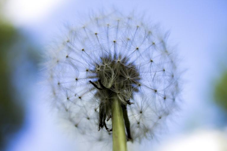 Keywords: close up dandelion flower lint fluff fluffy stem macro blue sky summer spring bloom overblown nice colorful