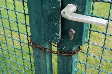 Keywords: closed to fence goal garden door close locks to secure padlock castle security capping shut off metal locked lock handle
