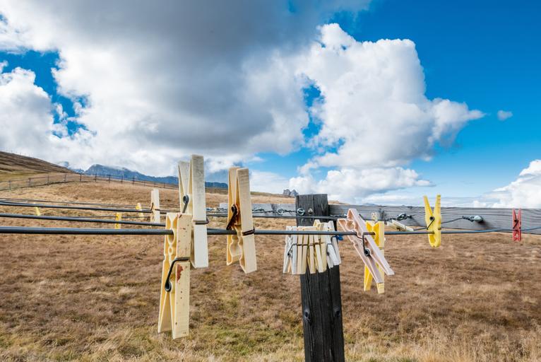 Keywords: clothespins clothes line clouds nature landscape dolomites south tyrol meadow alp sky wind