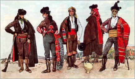 | Keywords: Clothing of Spain Table154-2.jpg Clothing of Spain Andalusia ang Granada Андалузия Г анада 1 2 Всадники из Андалузии Шляпа с загнутыми к аями и маленьким се еб яным султаном под нею - падающий на спину головной платок к асный кушак 2 - накидка с бах омой 3 Погонщик мулов Штаны с отво отами головной платок шляпа 4 Сосуд для питья из кото ого вино вливается в от 5 Цыганский ко оль из Г анады Золотисто-желтый кушак ост оконечная шляпа с большим се еб яным султаном History of costume http //silveromsk virtbox ru/moda/index152-2 html century 19 anonimous PD-Art Clothing of Spain Files uploaded by Shakko from various sources People of Andalusia in art |