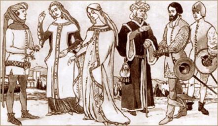 | Keywords: Clothing of Spain Table62-2.jpg Clothing of Spain 13-15th c Одежда п идво ных 1 Человек благо одного звания ок 1375 г Сине-белая шляпа-тю бан; к асный капюшон с длинным хвостом п ик епленный к во отнику; белая ку тка; позолоченный низко посаженный пояс; желтые паголенки 2 П идво ная дама в к асном нижнем платье с синими укавами и белом ве хнем без укавов отделанном золотом Цепь на шее се ьги венок на непок ытых волосах 3 П идво ная дама в белом плаще с к асной подбивкой и золотыми к аями; под ним белое ве хнее платье и озово-лиловое нижнее светлые волосы обесцвеченные щелочью Ок 1300 г 4 Знатный мужчина ок 1400 г в высокой ост оконечной шляпе и длинной отделанной мехом ве хней одежде 5 6 военные ок 1400 г Железные пе чатки маленькие к углые щиты History of costume http //silveromsk virtbox ru/moda/index152-2 html century 19 anonimous PD-Art Clothing of Spain Files uploaded by Shakko from various sources Chaperon headgear |