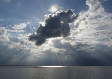Keywords: cloud formation sea sunbeam contrast weather mood