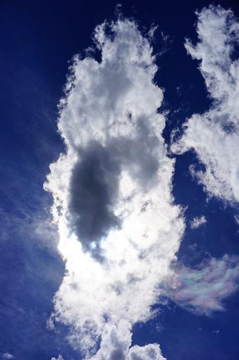 Keywords: cloud iridescent sky iridescent cloud weather phenomenon parhelia light phenomenon atmospheric lichtspiel bright pearlescent colours back light white blue
