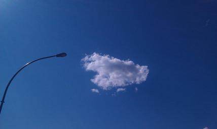 Keywords: Cloud and lamp.jpg en Lone cloud in blue sky Street lamp own manolpin 2011-08 Cc-zero Cumulus fractus