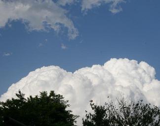 Keywords: cloud large white dense cumulus trees sky blue