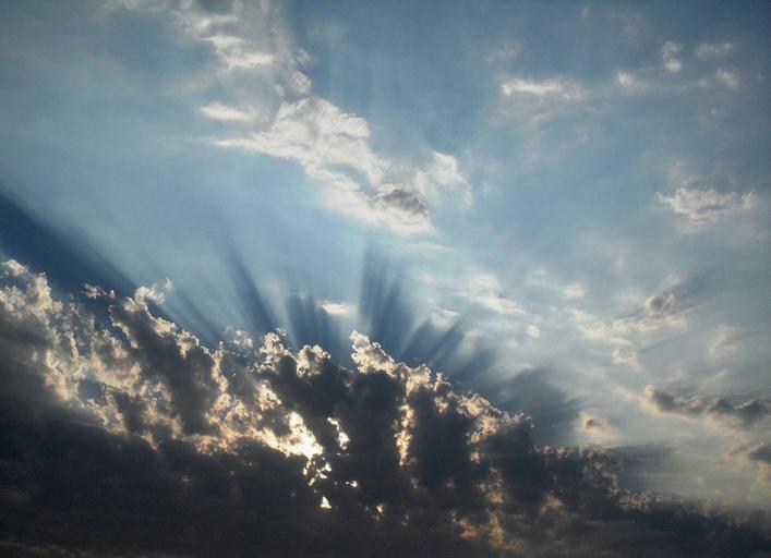 Keywords: clouds broken light pentrating rays shining bright sky light blue