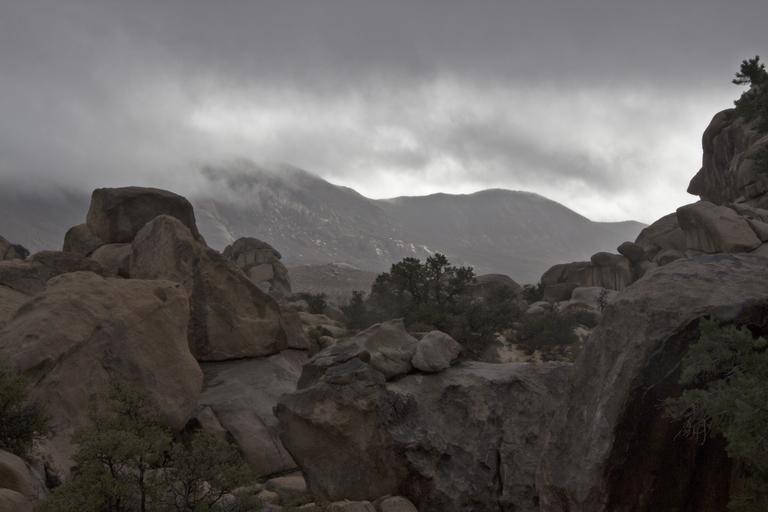 Keywords: joshua tree national park joshuatreenationalpark joshua tree joshuatree rocks sky clouds rain ryan mountain ryanmountain desert landscape rock outdoor rock formation mountain cloud hill NPS/Cathy Bell NPS/Cathy Bell