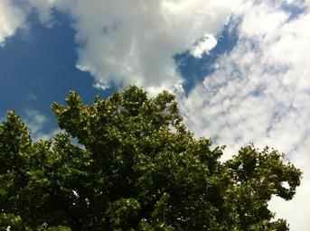 Keywords: clouds sky dragon blue clouds form white cumulus clouds nature summer day deciduous tree trees leaves summer green green tree