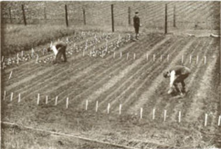 | Keywords: Clover-Trials-1902.jpg Planting new breeds of clovers at Gartons Experimental Grounds Gartons Limited Farm Seeds Catalogue 1902 spring 1902 Gartons Limited From a copy held in the Miln Family Cartulary PD-old Breeding Agriculture in the United Kingdom |