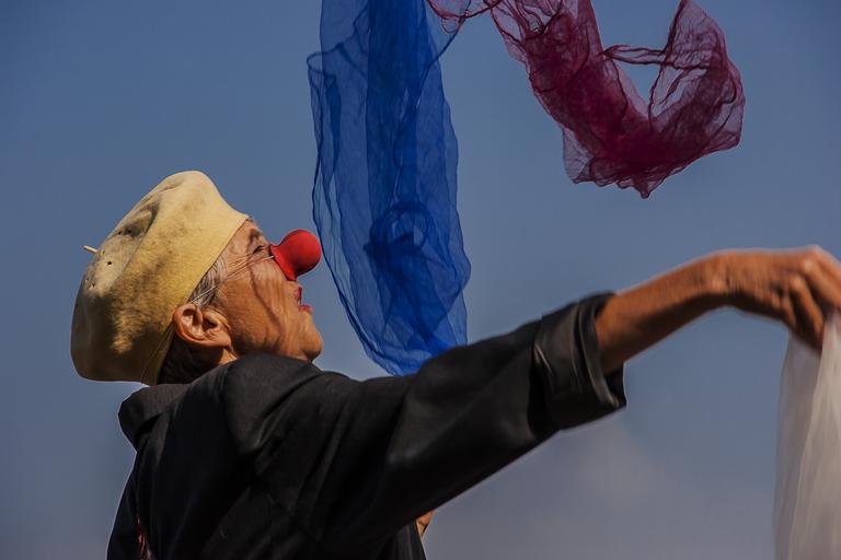 Keywords: clown towels juggle woman face cheerful portrait human colorful funny red currant