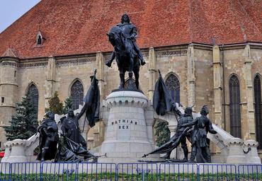 Keywords: cluj-napoca romania mathias rex square church statue old history architecture europe landmark city building monument sculpture