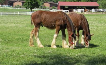 Keywords: clydesdales horses yearlings young grazing pasture corral fence barn farm portrait agriculture