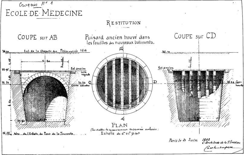 | Keywords: CMVP 1898 6 p29 Puisard école de médecine 2.jpg fr Relevé d'un puisard mis à jour rue Hautefeuille lors des travaux d'extension de l'école de médecine 1898-06 Procès-verbal de la Commission Municipale du Vieux Paris 1898 7 juillet 1898 p 29 Commission Municipale du Vieux Paris PD-old Commission Municipale du Vieux Paris Uploaded with UploadWizard |