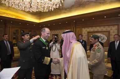 | Keywords: CNO Adm. Greenert receives a medal from Crown Prince Salman bin Abdulaziz. (8467237999).jpg RIYADH Kingdom of Saudi Arabia Feb 10 2013 Chief of Naval Operations CNO Adm Jonathan Greenert receives the King Abdulaziz Medal of Excellence from Crown Prince Salman bin Abdulaziz Deputy Premier and Minister of Defense of the Kingdom of Saudi Arabia during a counterpart visit to promote continued U S support U S Navy photo by Mass Communication Specialist 1st Class Peter D Lawlor/Released 130210-N-WL435-111 Join the conversation http //www facebook com/USNavy www facebook com/USNavy http //www twitter com/USNavy www twitter com/USNavy http //navylive dodlive mil navylive dodlive mil https //www flickr com/photos/usnavy/8467237999/ CNO Adm Greenert receives a medal from Crown Prince Salman bin Abdulaziz 2013-02-10 05 09 https //www flickr com/people/56594044 N06 Official U S Navy Page from United States of America PD-USNavy Official U S Navy Imagery https //flickr com/photos/56594044 N06/8467237999 2016-12-14 05 01 34 United States Government Work Files from the U S Navy Flickr stream Files uploaded by Reguyla People of the United States Navy |