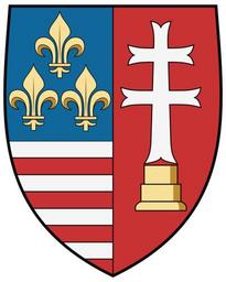 Keywords: Coa Hungary Town Tata.svg en Coat of arm of Tata hu Tata címere Tata város címere háromszög alakú fekete kontúr pajzs Felső széle egyenes jobb és bal széle ívelt Középen függőleges irányban hasított ezzel két részre osztott A címer eleje további két részre vágott a pajzsfejre és a pajzstalpra A kobaltkék alapszínű pajzsfej felső részében szimmetrikusan elhelyezkedő két aranyszínű Anjou-liliom van A pajzstalp vágásos az Árpád-házat szimbolizáló nyolc sávot foglalja magába ezüst és sötét cinóber színek váltakozásával A pajzsfej és a hozzá csatlakozó pajzstalp motívumai pólyát képeznek A címer hátulján lévő ezüstös villás végű kettőskereszt három vízszintes tagozódású egymásra épülő aranyidomból emelkedik ki A címer hátuljának alapszíne sötétcinóber Az Anjou-címerkép liliomai kitüntetésként jutottak a város címerébe a királyi pártfogás jeléül míg a kettőskereszt a királyi méltóságot jelképezi A címer elemei csekély változtatással megegyeznek az Anjou-ház királyi címerének elemeivel s így a város egykori királyi kiváltságos voltára utalnak - CoA https //magyarcimerek hu/2762-tata Madboy74 2010-03-21 PD-Coa-Hungary cc-zero Per pale the dexter per fess 3 fleurs-de-lis Or in heraldry SVG coats of arms of Hungary Coats of arms from Komárom-Esztergom County Barry of eight argent and gules Hungary Symbols of Tata Crosses argent Lorraine and patriarchal crosses in heraldry Pictures by Madboy74 HQ Pictures by Madboy74 Pictures by Madboy74 - 1 Coat of arms by Madboy74 - Hungarian