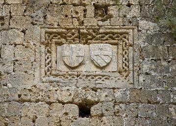 | Keywords: CoA Jean-Baptiste Orsini Grand master Rhodes.jpg Giovanni Battista ORSINI 39th Grand Master of the order of the Knights of Saint John of Jerusalem Knights of Rhodes elected 4th march 1467-dead 8 june 1476 Walls of the medieval city of Rhodes Greece chevaliers hospitaliers de Saint-Jean de Jerusalem Chevaliers de Rhodes A droite armoiries de Jean-Baptiste ORSINI 39ème Grand-Maître ” Bandé d'argent et de gueules de six pièces au chef d'argent chargé d'une rose de gueules et soutenu d'une fasce d'or Sur son sarcophage conservé au Musée de Cluny ses armes sont placées à côté de celles de la Religion La fasce n'est point chargée d'une anguille d'azur ou d'une vivre comme on l'a peint à Versailles et de plus elle divise l'écu en deux parties c'est-à -dire que le chef a la proportion d'un coupé D'après Rottiers la fasce serait chargée d'une couleuvre de sable Etant G Prieur de Rome J B Orsini fut élu Maître le 4 mars 1467 et mourut le 8 juin 1476 Source own Jebulon 2011-04-14 Cc-zero QualityImage Gothic reliefs in Greece Heraldry of the Medieval city of Rhodes Reliefs of coats of arms in Greece Quality images by Jebulon Coats of arms of the Sovereign Military Order of Malta Coats of arms of the House of Orsini Renaissance reliefs in Greece |