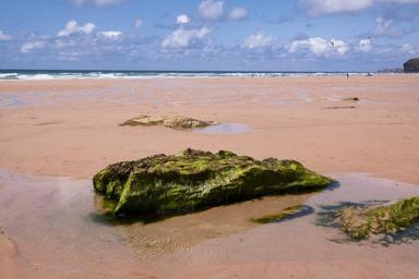 Keywords: coast beach stones sea seaweed water sky landscape nature clouds lake wave idyll atlantic sand beach leisure holiday holidays recovery